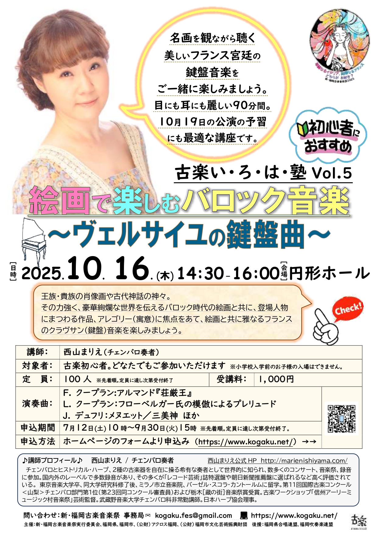 新・福岡古楽音楽祭 2025|古楽い・ろ・は塾 vol.5 絵画で楽しむバロック音楽〜ヴェルサイユの鍵盤曲|アクロス福岡 円形ホール|西山まりえ