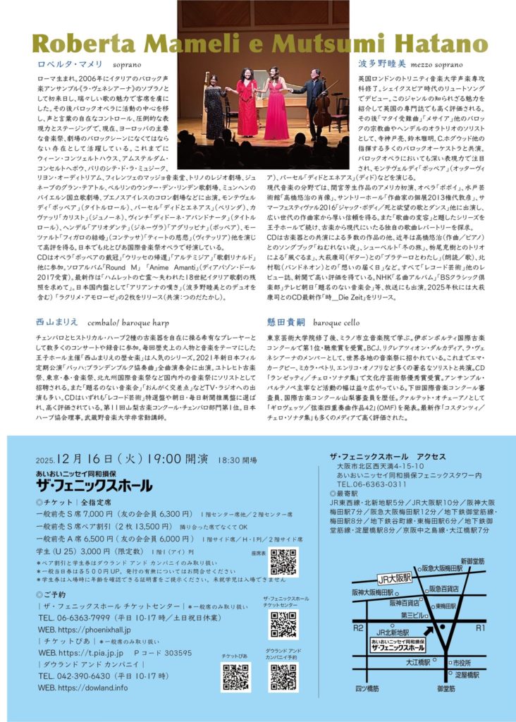 ロベルタ・マメリ 波多野睦美|イタリア バロックを歌う|ザ・フェニックスホール|懸田貴嗣 西山まりえ