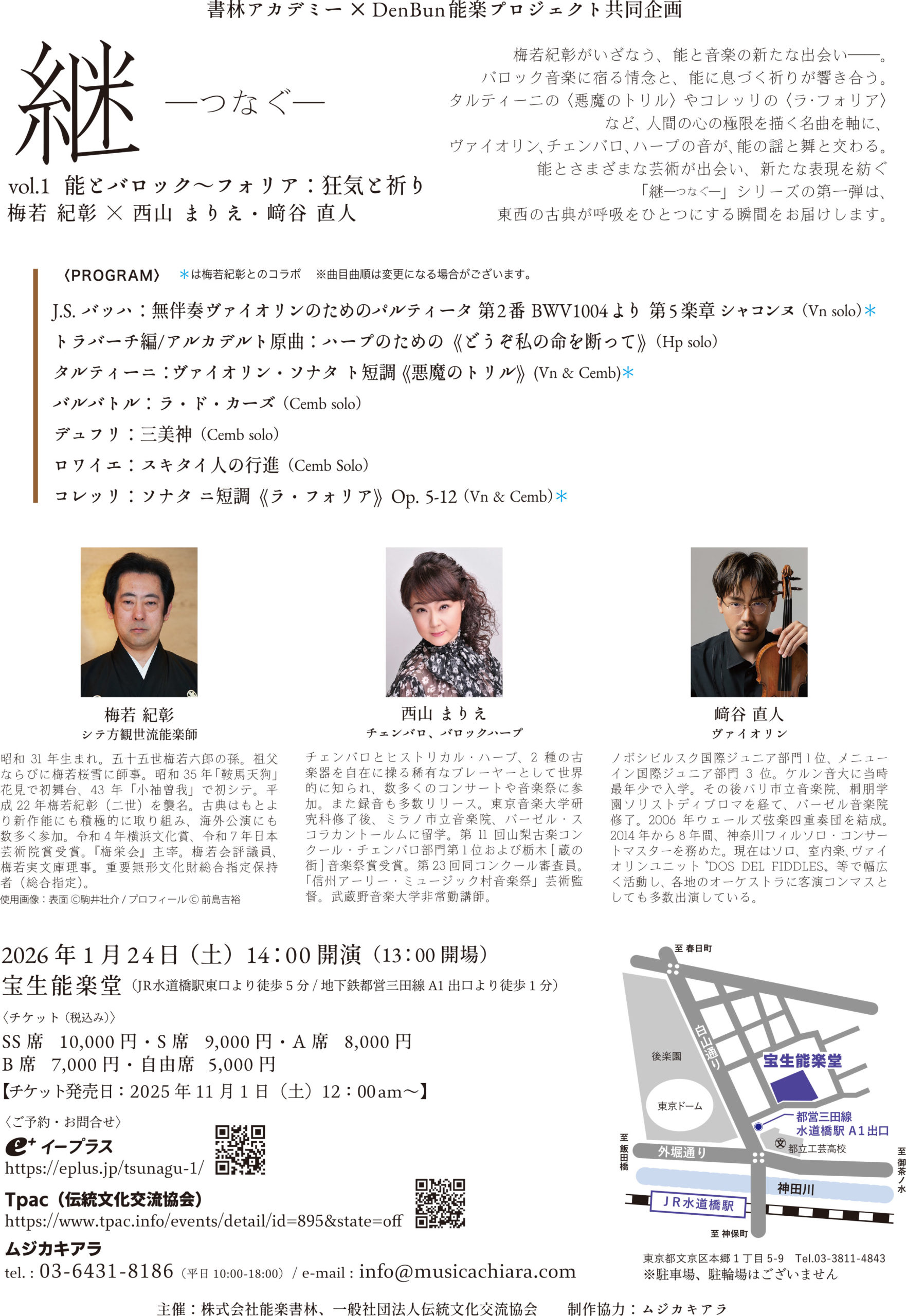 継ーつなぐー vol. 1 能とバロック〜フォリア:狂気と祈り|悪魔のトリル|スキタイ人の行進|宝生能楽堂|梅若紀彰 西山まりえ 﨑谷直人