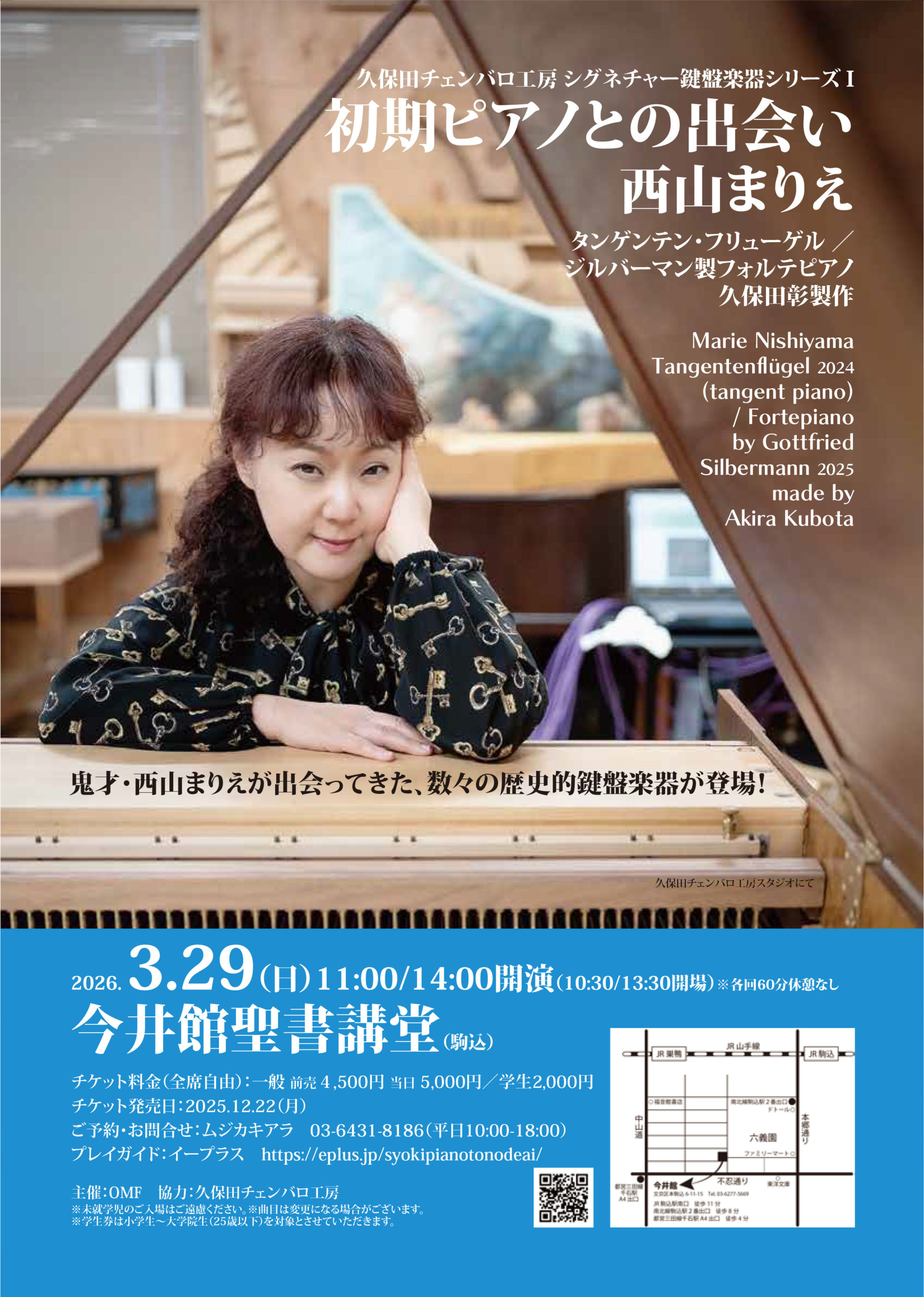 初期ピアノとの出会い|久保田チェンバロ工房シグネチャー鍵盤楽器シリーズI|タンゲンテン・フリューゲル|ジルバーマン製フォルテピアノ|西山まりえリサイタル|今井館聖書講堂