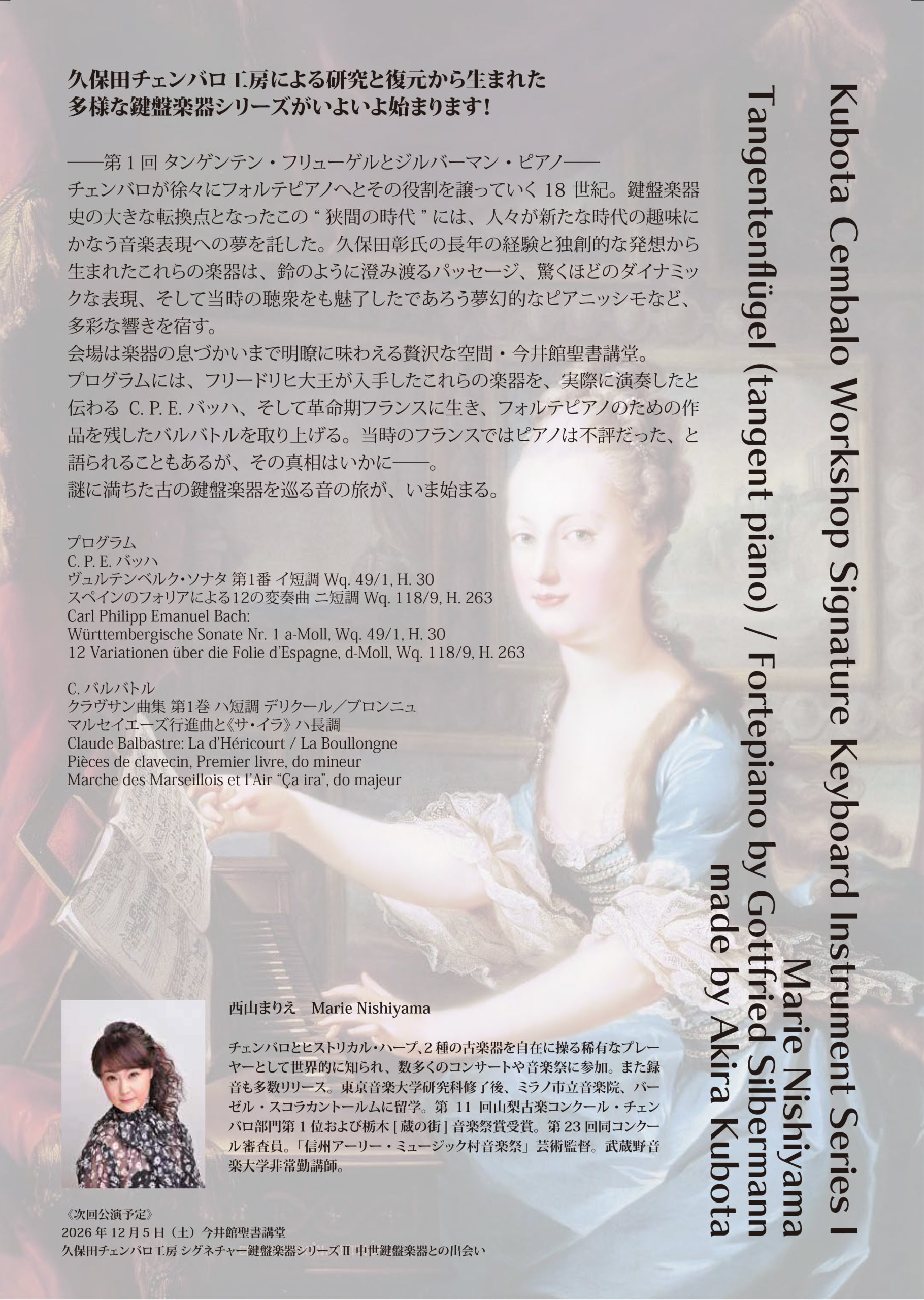 次回公演予定:2026年12月5日(土)今井館聖書講堂 久保田チェンバロ工房シグネチャー鍵盤楽器シリーズII《中世鍵盤楽器との出会い》